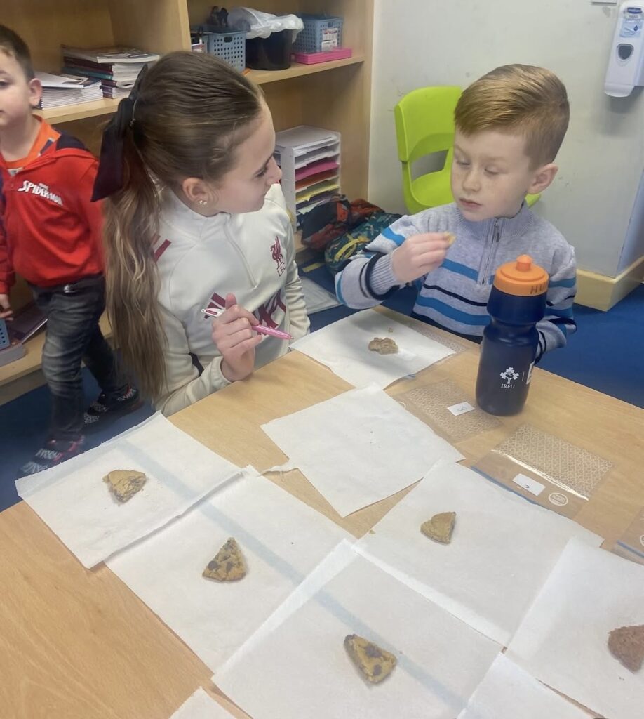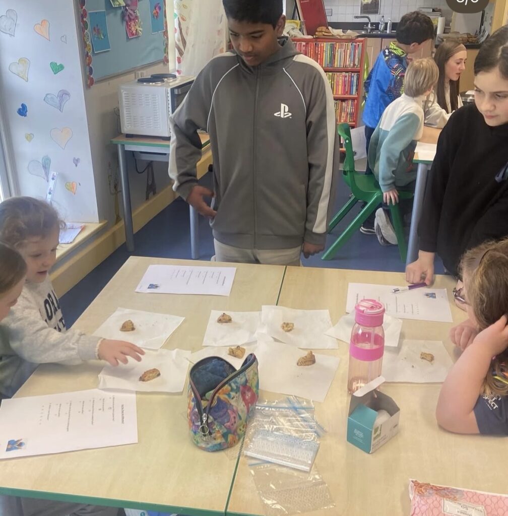 The Senior Room have been busy investigating what happens when they change the ingredients used to make cookies . They had some very willing tasters from the Junior Room on hand to give feedback on their research !! Ms. Culhane and the Senior Room are looking forward to presenting their findings at this year’s Science Blast .
